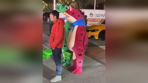 这时,周围的路人也纷纷被这温馨的画面吸引过来。一位阿姨笑着说:“看这两只小青蛙,吃瓜的样子真可爱!”一位叔叔则说:“是啊,这画面让人心情都好了。”